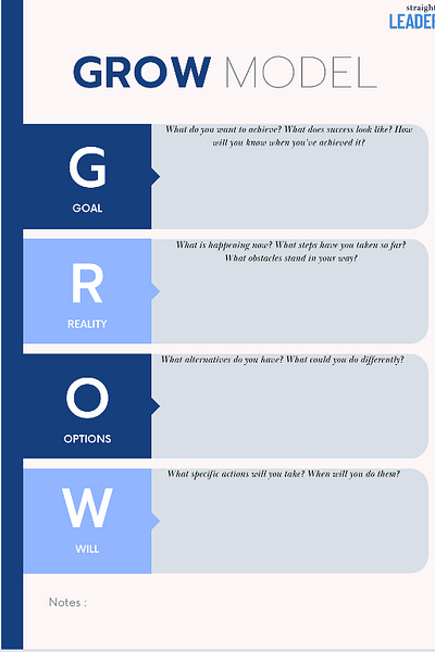 📋 Four structured sections (Goal, Reality, Options, Will) with expert coaching prompts